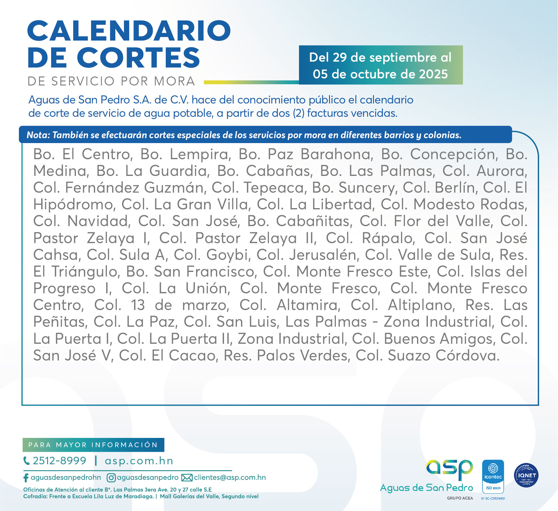 COMUNICADO - HORARIO NAVIDEÑO AGENCIAS DE SERVICIO AL CLIENTE Y OFICINAS DE ASP