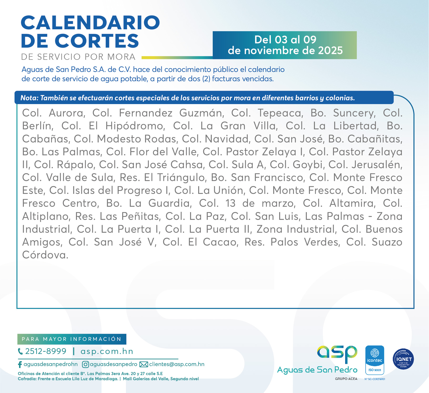 Entérate de las novedades del servicio de agua (Interrupciones, Mantenimientos, Calendario de Cortes y otros).