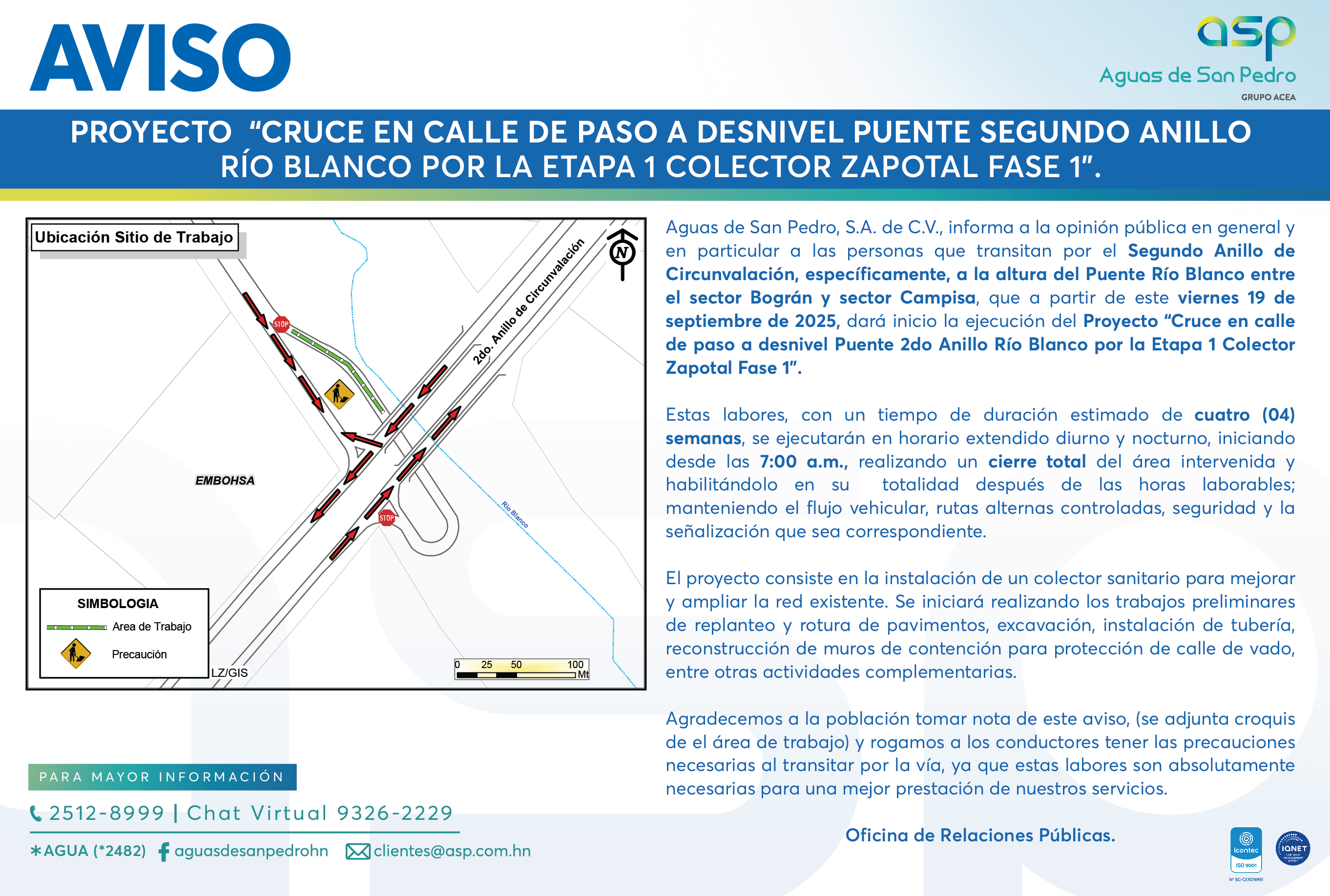 PROYECTO "CRUCE EN CALLE DE PASO A DESNIVEL PUENTE SEGUNDO ANILLO RÍO BLANCO POR LA ETAPA 1 COLECTOR ZAPOTAL FASE 1"