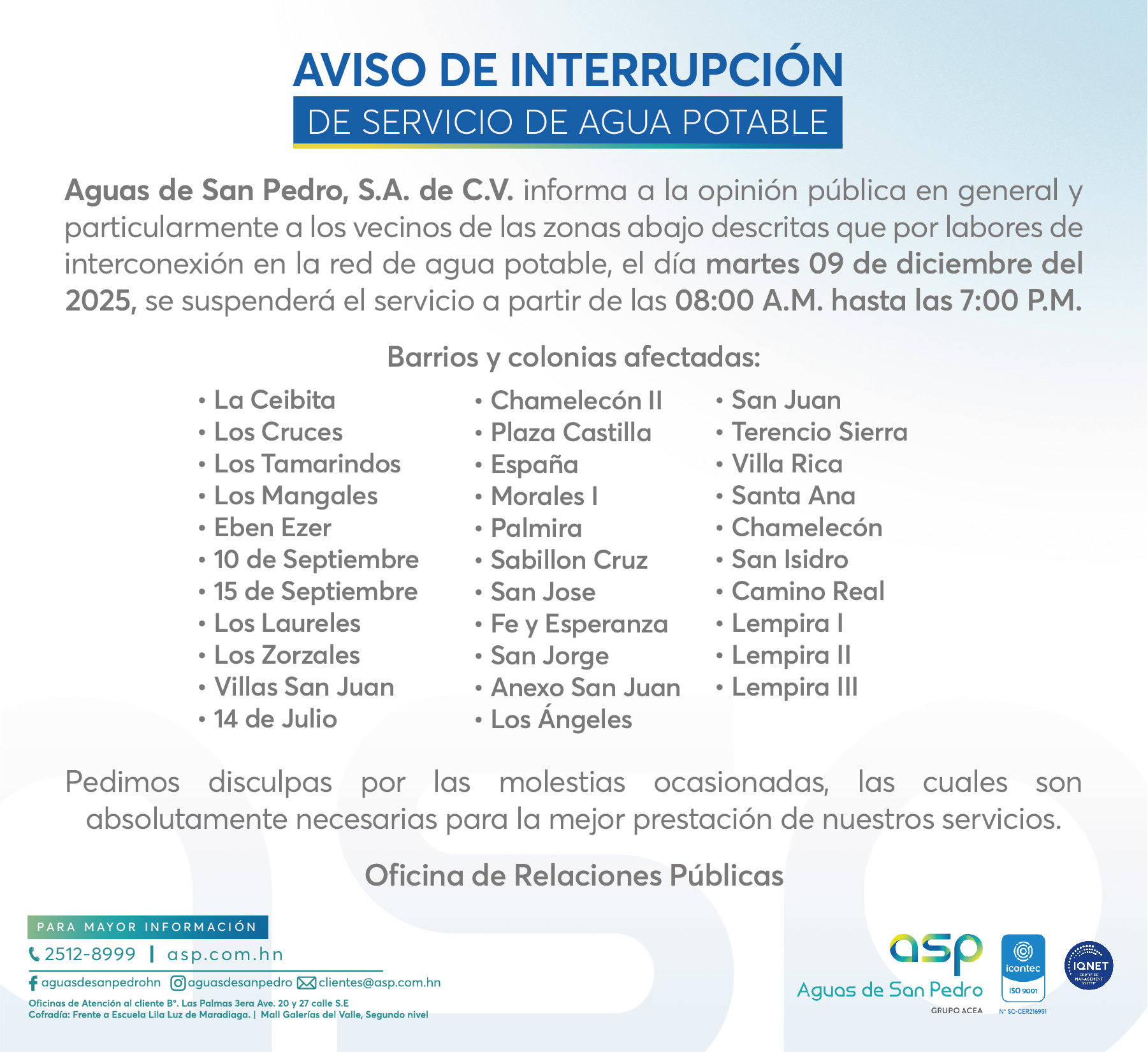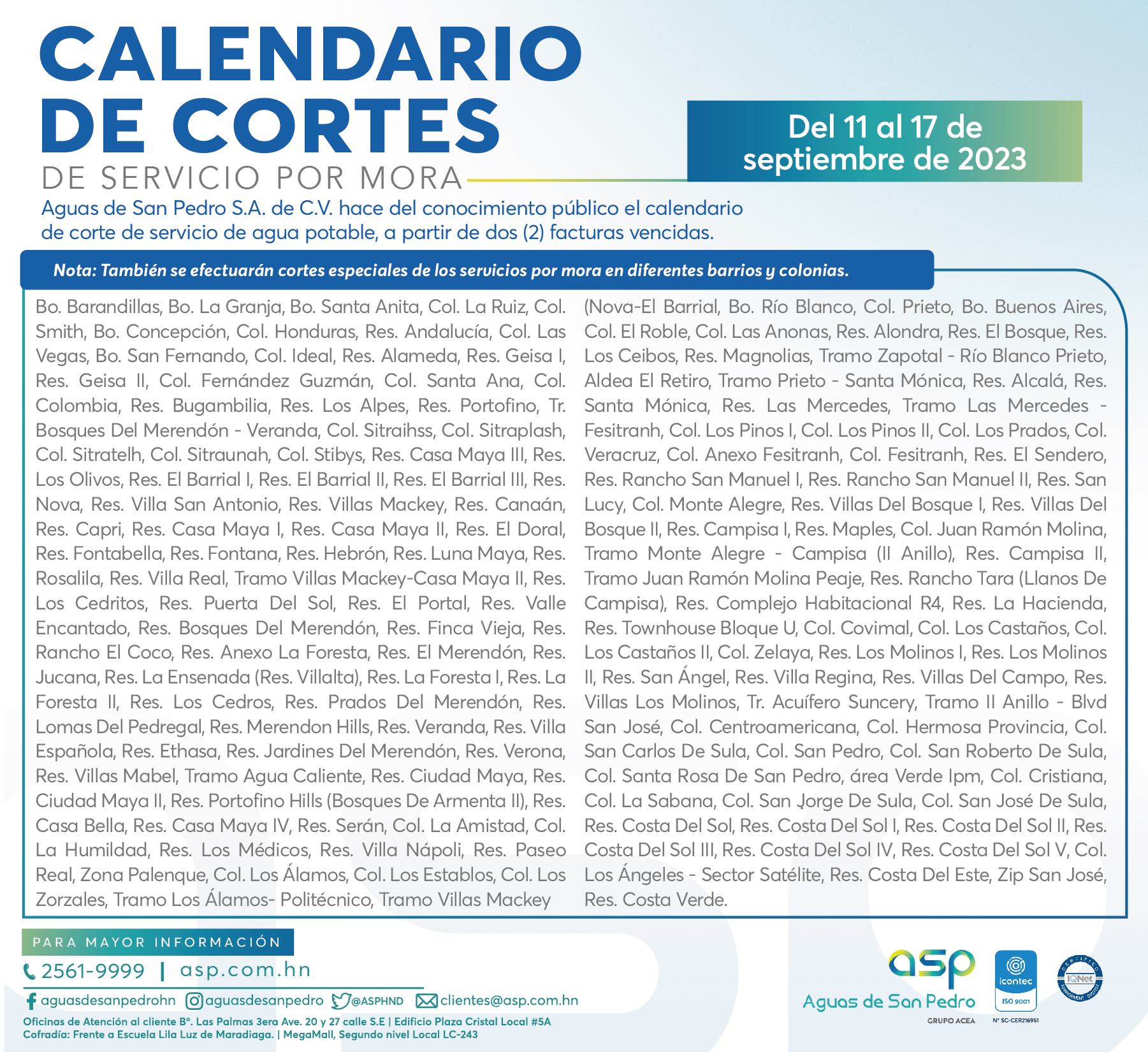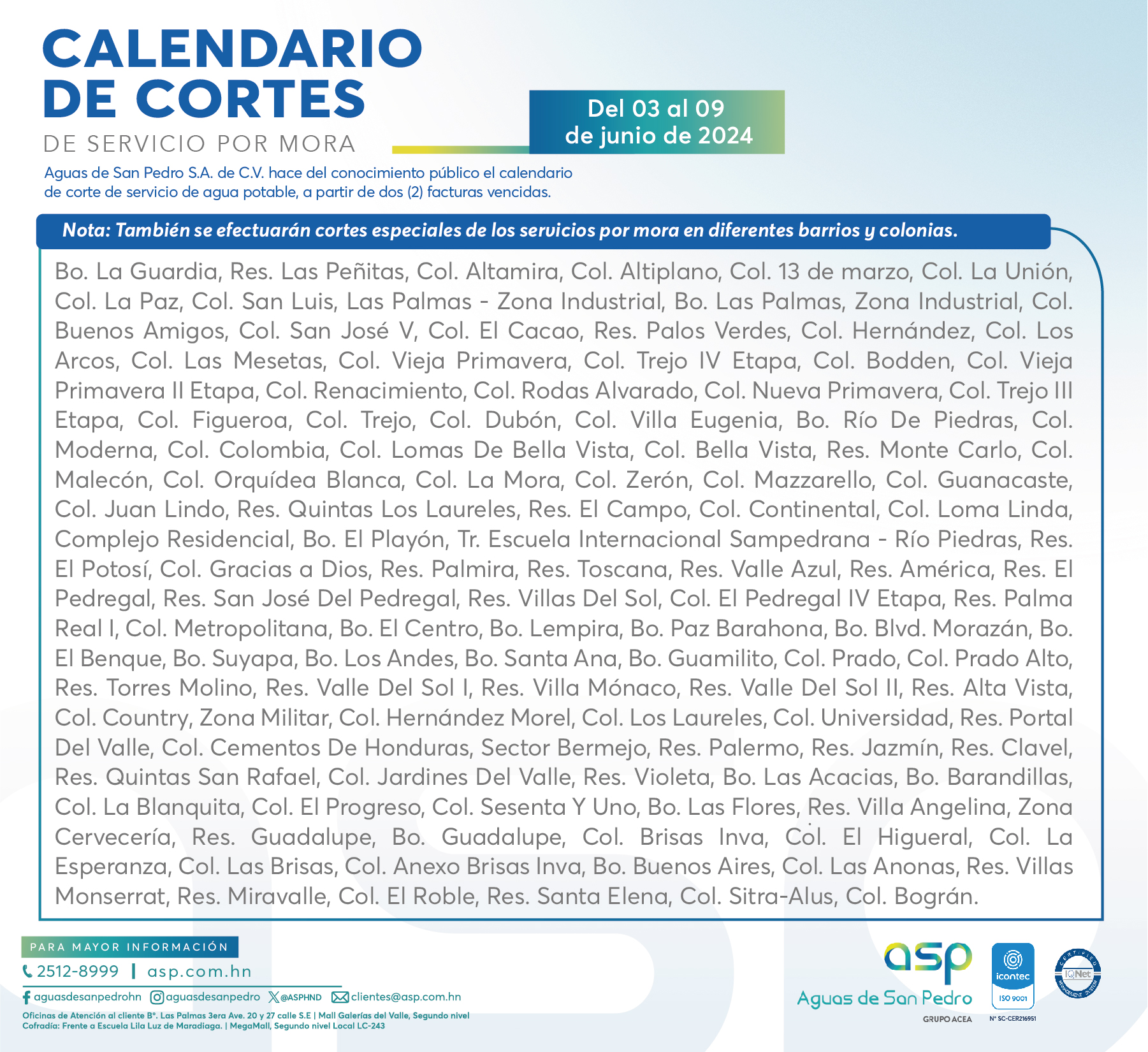 Entérate de las novedades del servicio de agua (Interrupciones, Mantenimientos, Calendario de Cortes y otros).