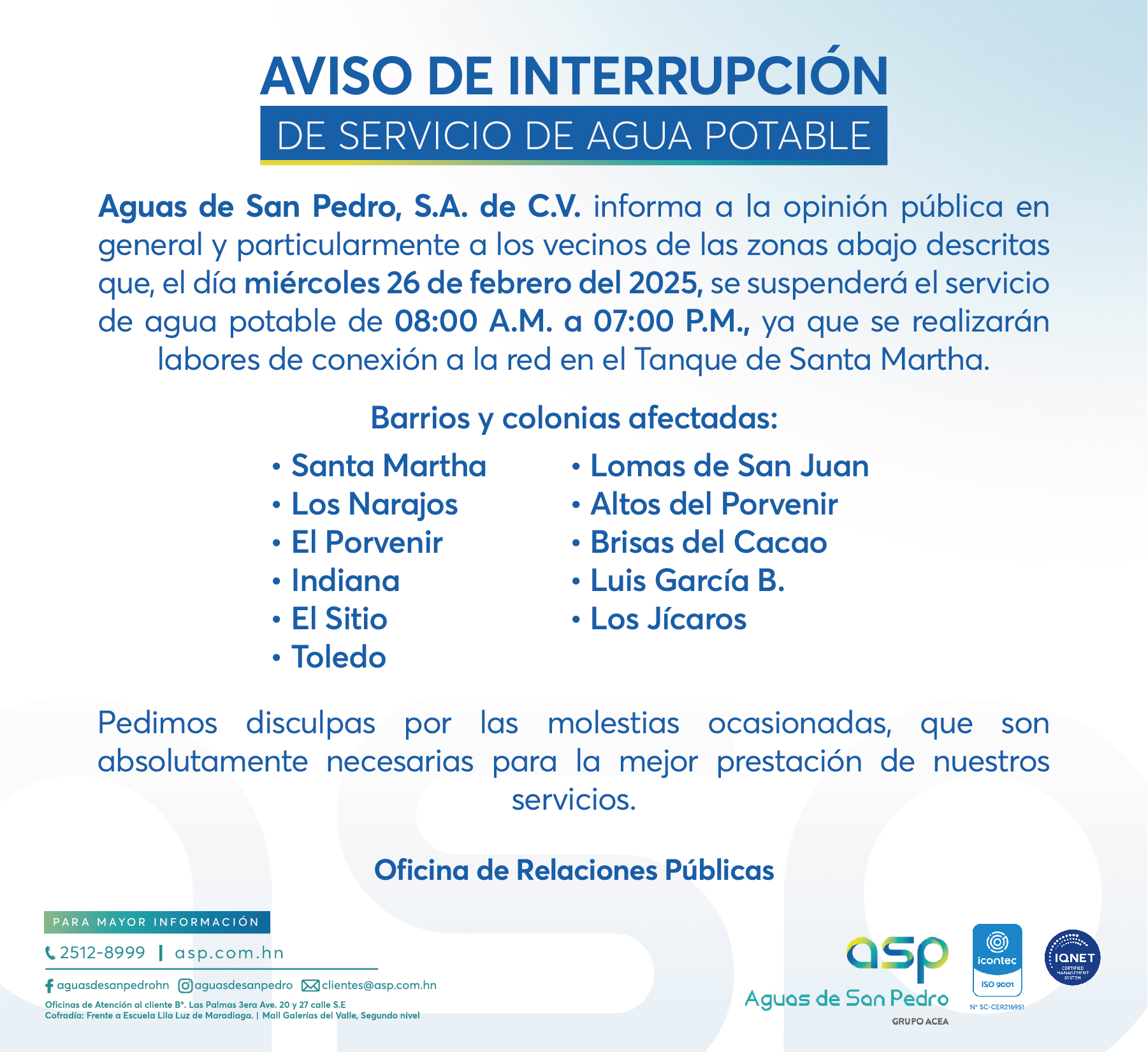 ¡APROVECHA LA CONDONACIÓN! CLARAS COMO EL AGUA TUS CUENTAS EN AGUAS DE SAN PEDRO