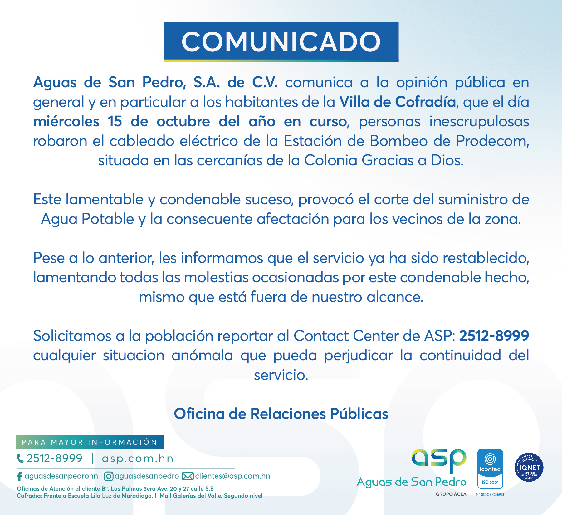 COMUNICADO - HORARIO NAVIDEÑO AGENCIAS DE SERVICIO AL CLIENTE Y OFICINAS DE ASP